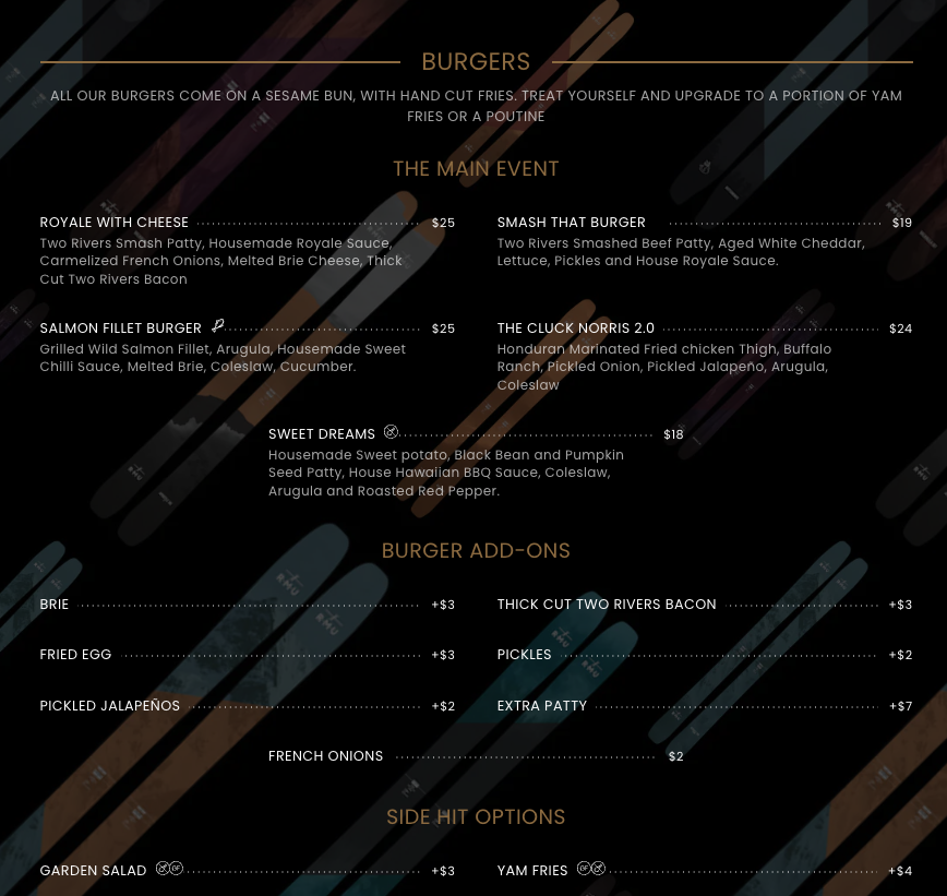 Two Rivers Smash Patty, Housemade Royale Sauce, Carmelized French Onions, Melted Brie Cheese, Thick Cut Two Rivers Bacon